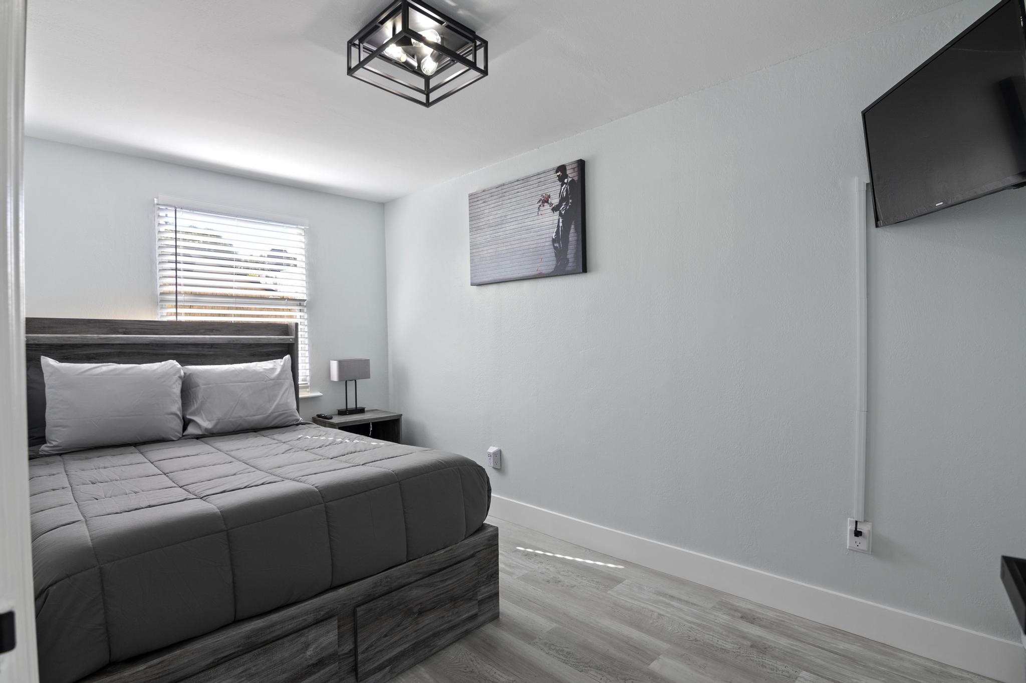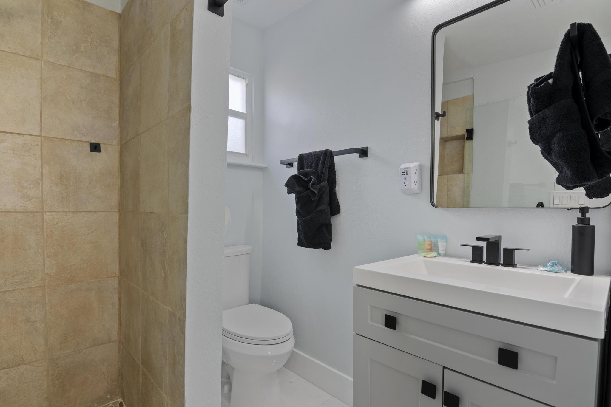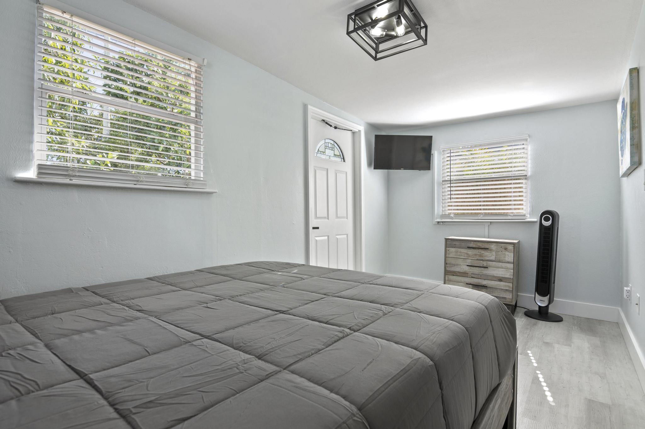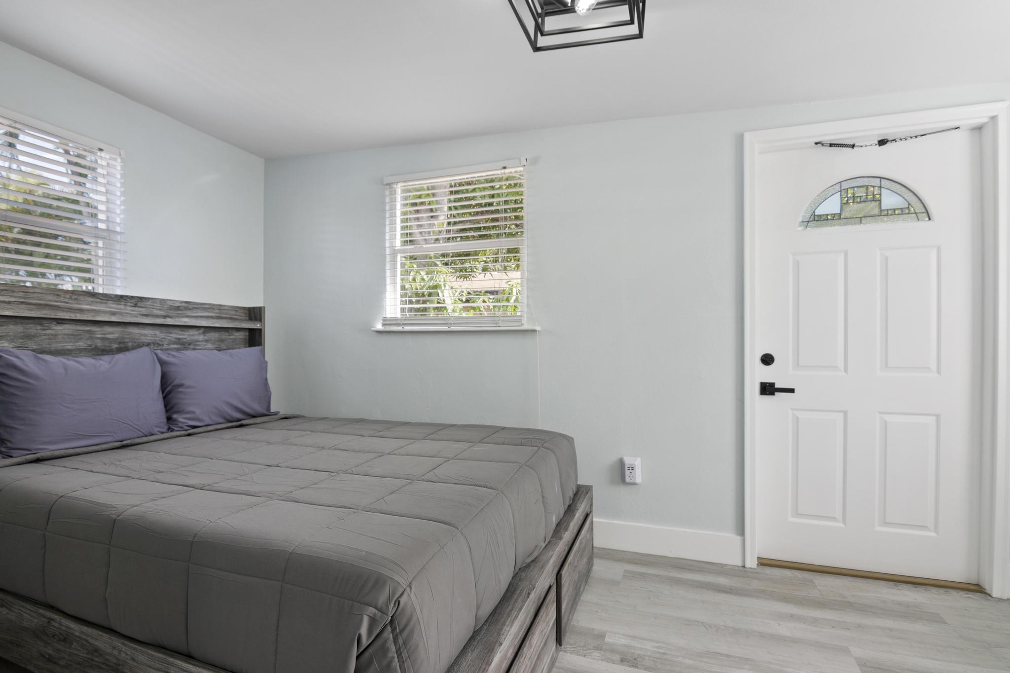 Welcome to Your Private, Modern South Florida Cottage Retreat! Nestled in the sunny embrace of West Palm Beach, Florida, our beautifully renovated, fully private cottage offers the perfect blend of comfort and relaxation. Designed to host up to four guests, this charming getaway features a luxurious queen-size bed and a cozy full-size bed. Delightful Amenities: - Entertainment Hub: Immerse yourself in endless entertainment on our 32” HDTV, complete with HBO Max, Amazon Prime Video, Hulu, Disney+, Apple TV, Netflix, Chromecast, and a selection of board games. - High-Speed Wi-Fi: Stay effortlessly connected with our blazing-fast Wi-Fi, offering speeds up to 780 Mbps. Prime Location: Located in a lush, tropical neighborhood, our cottage provides easy access to: - Beautiful beaches just a 5-minute drive away - West Palm Beach International Airport, a mere 10-minute drive - Downtown West Palm Beach, 2.5 miles away - Iconic Antique Row and historic Lake Worth Beach, 2 miles away - Renowned Delray Beach and Boca Raton hotspots Comfort and Safety: - Climate Control: Enjoy perfect comfort with new central air conditioning, complemented by ceiling and portable fans. - Security & Peace of Mind: Our cottage is equipped with security cameras, smoke and carbon monoxide alarms, a fire extinguisher, and a first aid kit for your safety. Serene Bedrooms & Full Bathroom: Rest peacefully in tranquil bedrooms adorned with premium cotton linens, extra pillows, blankets, and ample storage. Our full bathroom offers luxury toiletries and fresh towels, ensuring a refreshing start to your day. Inviting Living Area & Fully-Equipped Kitchen: Unwind on our stylish, comfortable couch while watching your favorite shows on the LED TV. The cottage features a complete kitchen, fully stocked with modern appliances and essential cookware for your convenience: - Stainless steel Frigidaire gas stove and oven - Refrigerator, freezer, microwave, toaster - Hot water kettle and coffee maker - Cooking basics, dishes, silverware, wine glasses, BBQ utensils Tranquil Outdoor Haven: Escape to your private backyard retreat, featuring a relaxing hot tub, lush tropical plants, a fire pit, outdoor furniture, a dining area, a BBQ grill, beach essentials, bicycles, and sun loungers. Although our family resides in the main house, your privacy is assured. You’ll rarely encounter us unless you need assistance—we’re here to ensure your stay is exceptional. Patio Bliss: Savor the sunny South Florida climate from the comfort of your private patio, perfect for dining al fresco, lounging, or simply soaking up the serene atmosphere of West Palm Beach. Book your unforgettable stay today and experience true relaxation and privacy at our modern cottage retreat in West Palm Beach. !