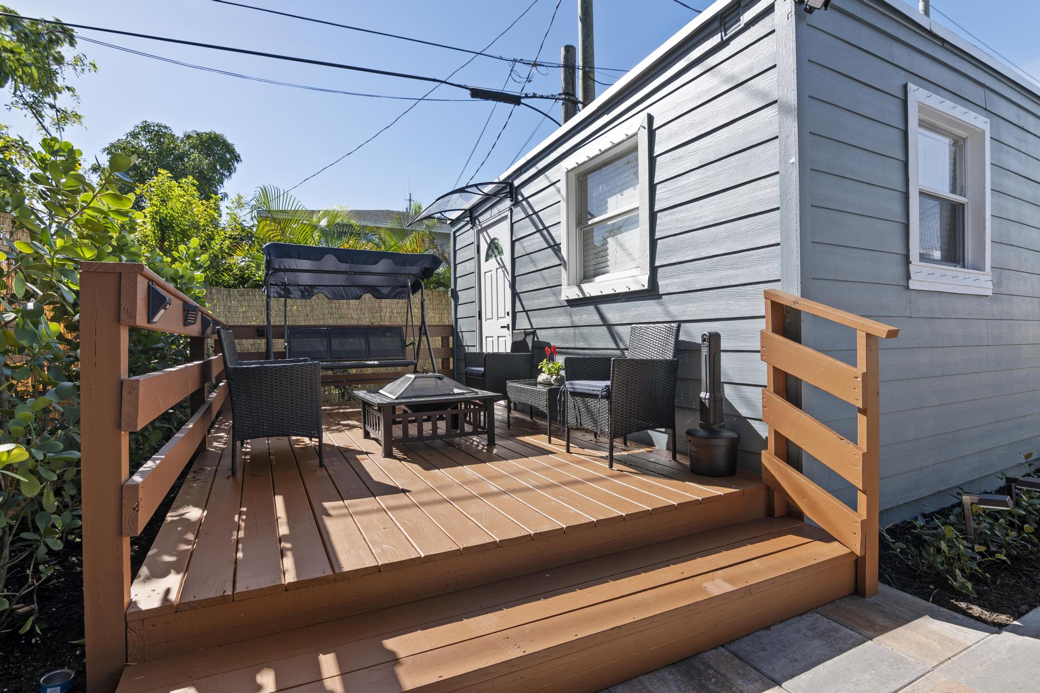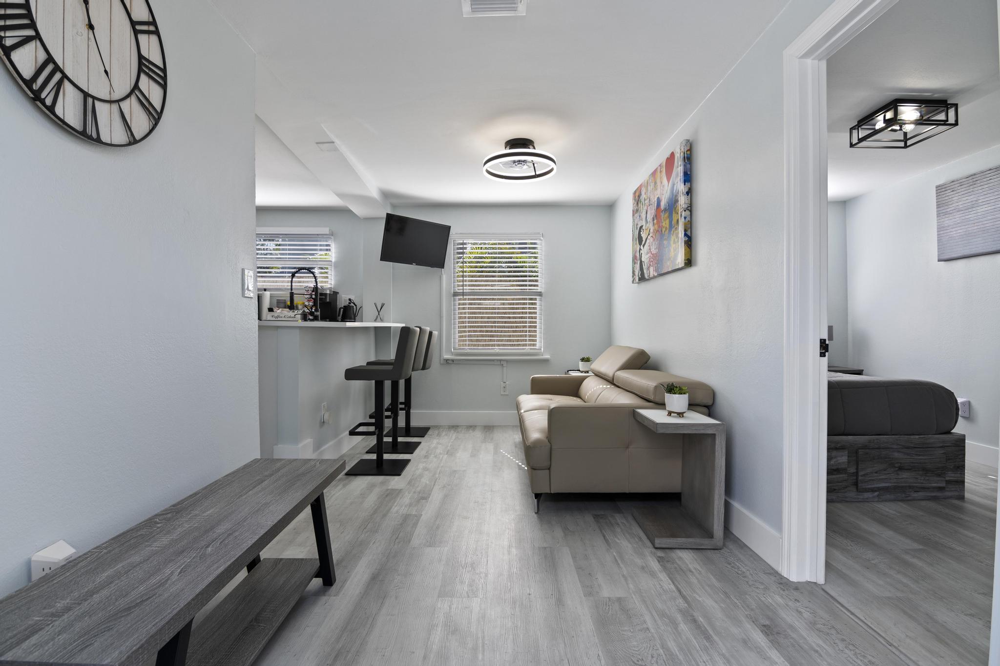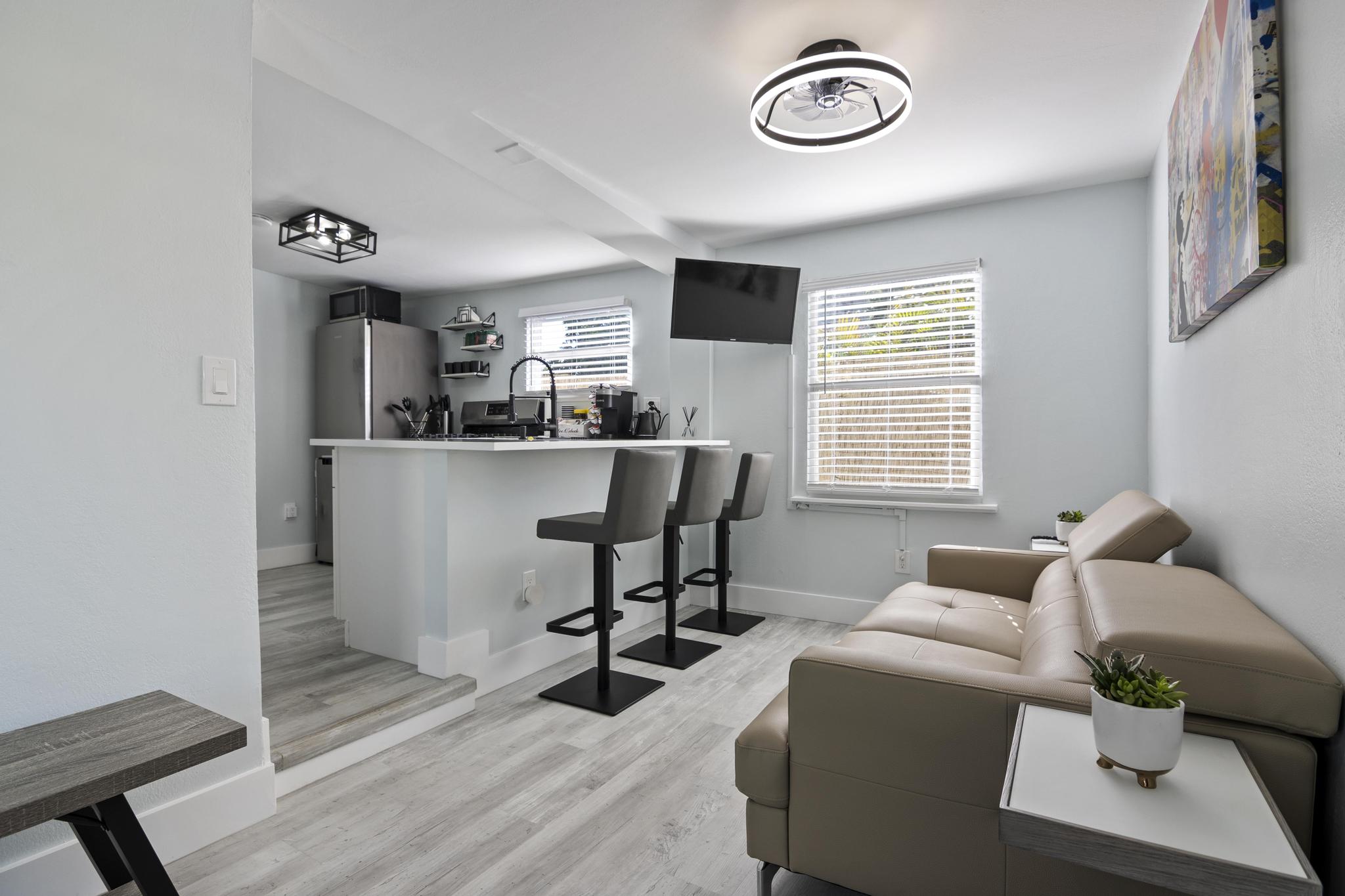 Welcome to your cozy 2-bedroom cottage in Downtown West Palm Beach! Enjoy smart TVs, plush beds, and a fully equipped kitchen with quartz countertops. Unwind in the private hot tub, grill in the backyard, or gather by the fire pit. Stay connected with free Wi-Fi and explore with complimentary bikes. Just minutes from beaches, dining, and shops, it’s perfect for couples, families, or remote work stays. Book your dream vacation today and experience a relaxing Florida getaway!