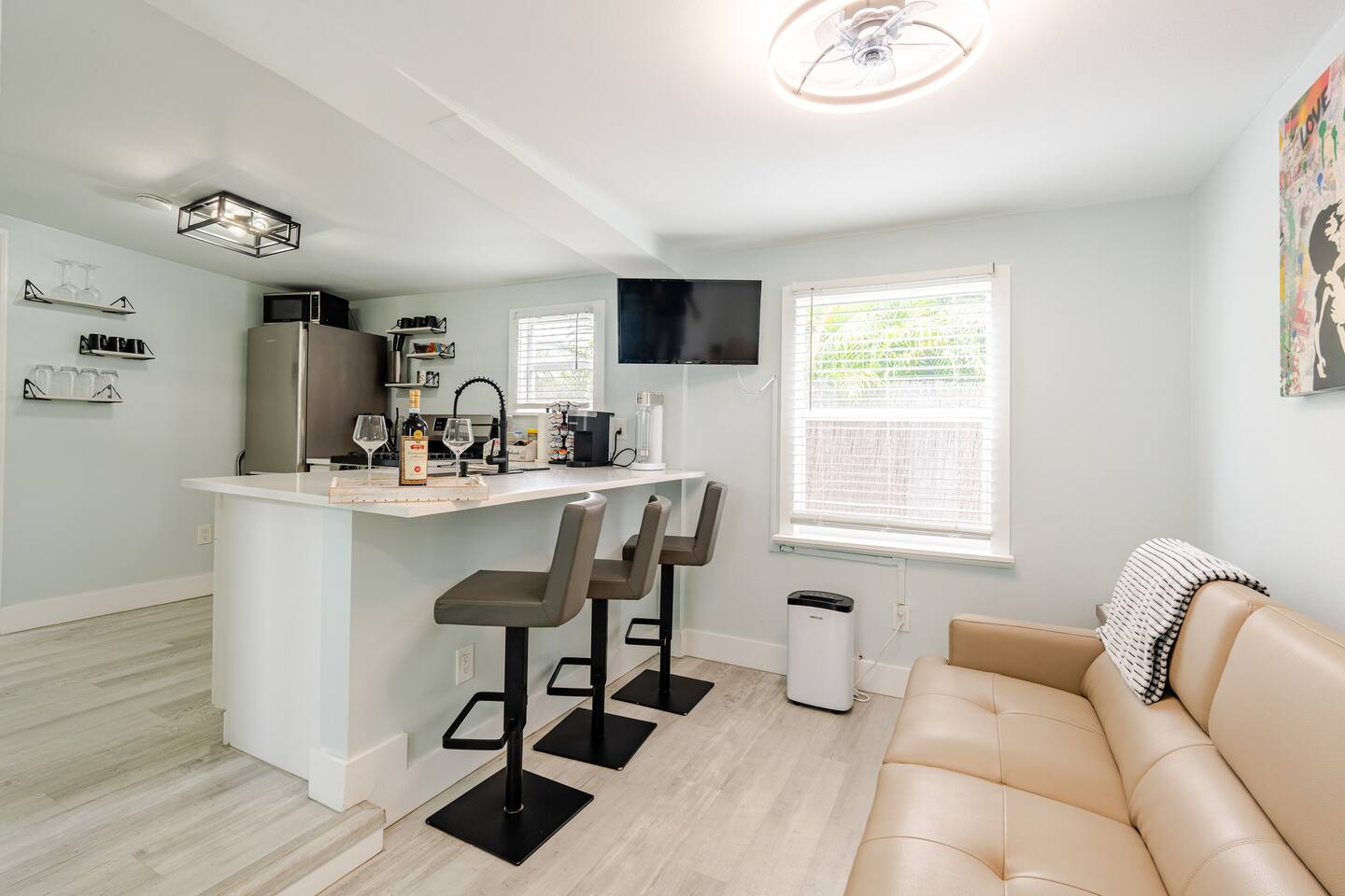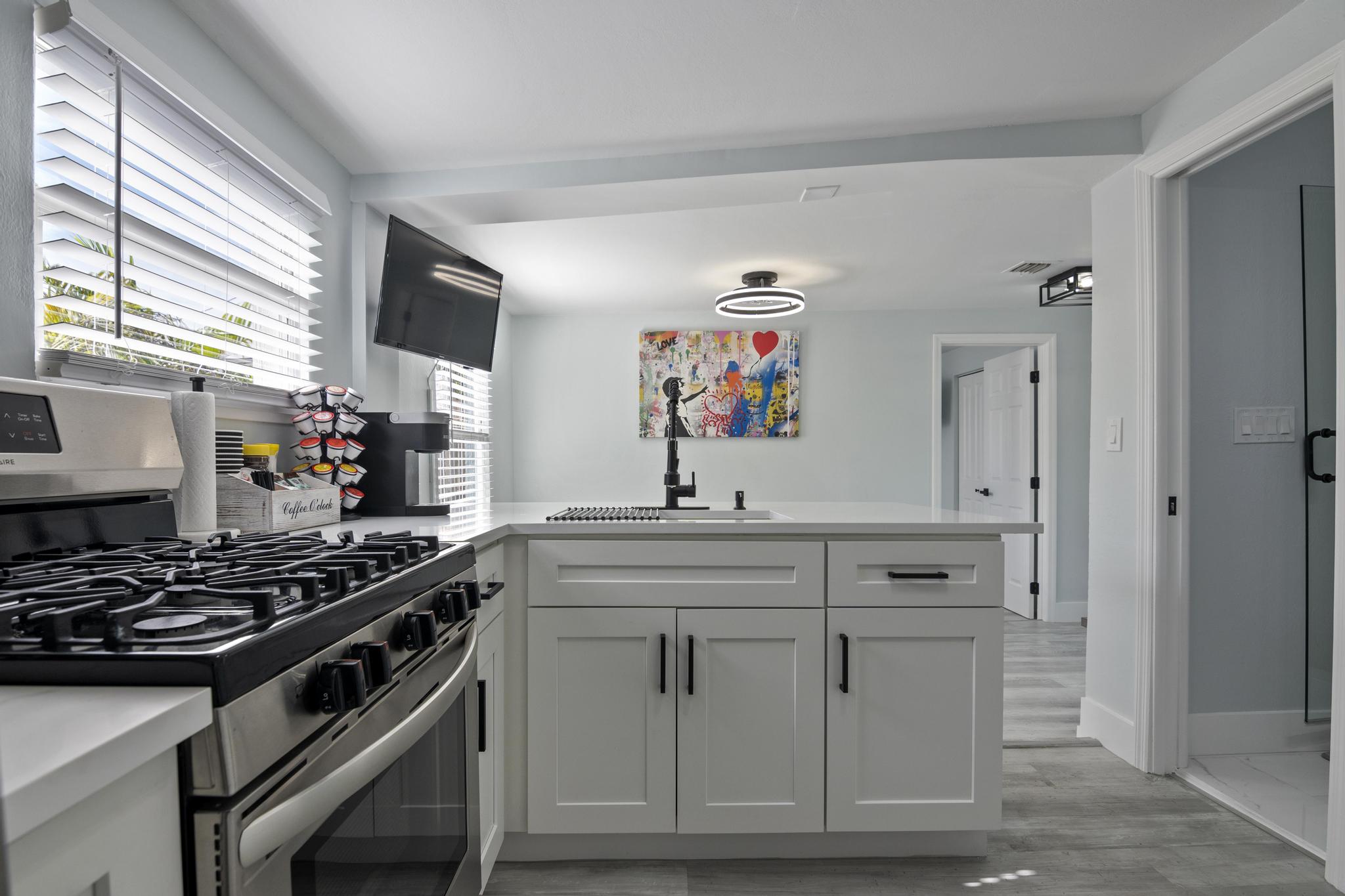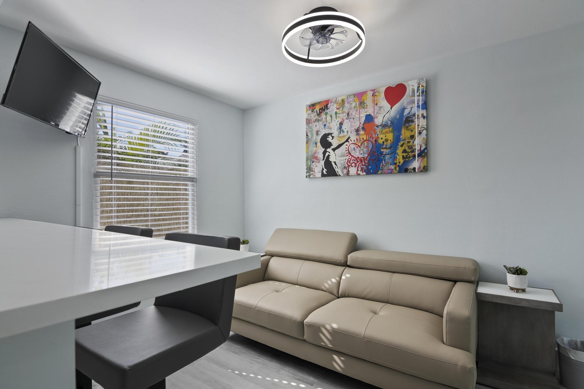 Welcome to your cozy 2-bedroom cottage in Downtown West Palm Beach! Enjoy smart TVs, plush beds, and a fully equipped kitchen with quartz countertops. Unwind in the private hot tub, grill in the backyard, or gather by the fire pit. Stay connected with free Wi-Fi and explore with complimentary bikes. Just minutes from beaches, dining, and shops, it’s perfect for couples, families, or remote work stays. Book your dream vacation today and experience a relaxing Florida getaway!